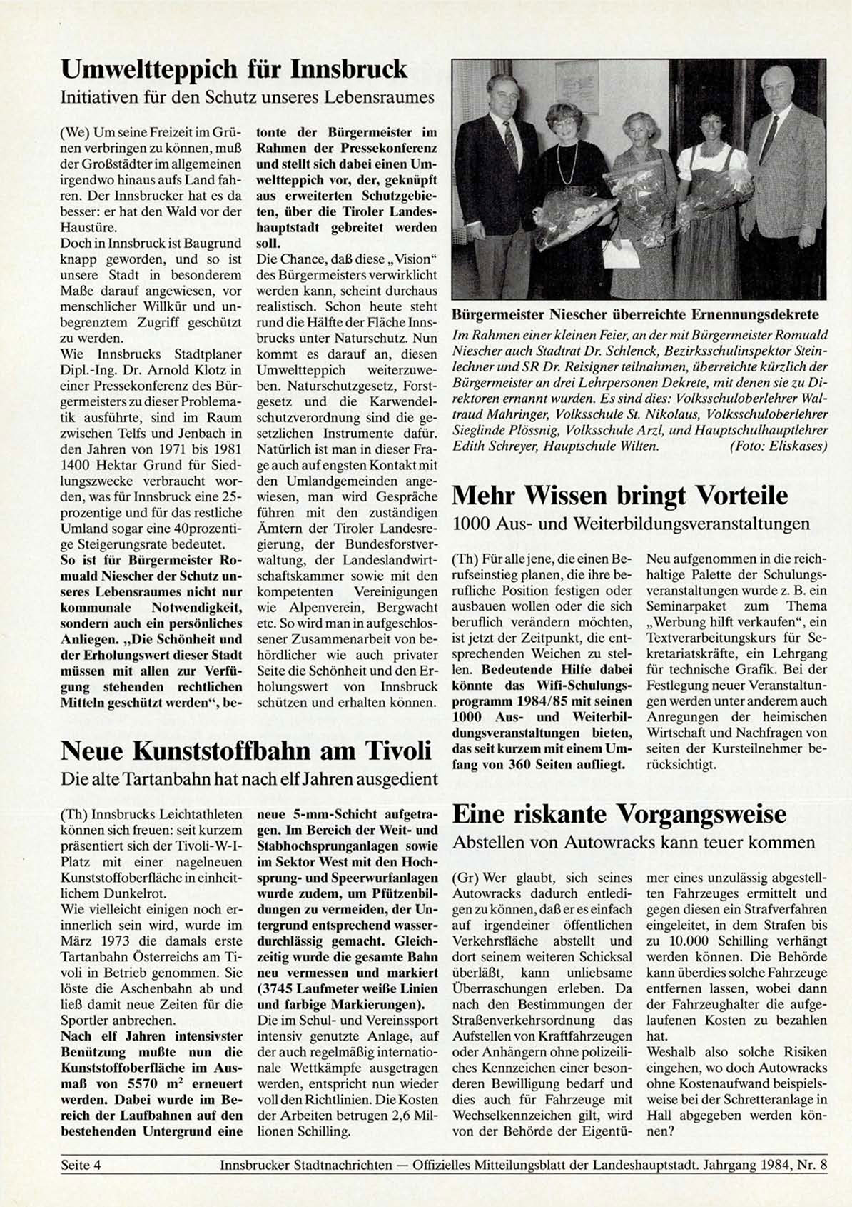 Innsbrucker Stadtnachrichten — Offizielles Mitteilungsblatt der Landeshauptstadt. Jahrgang 1984, Nr. 8