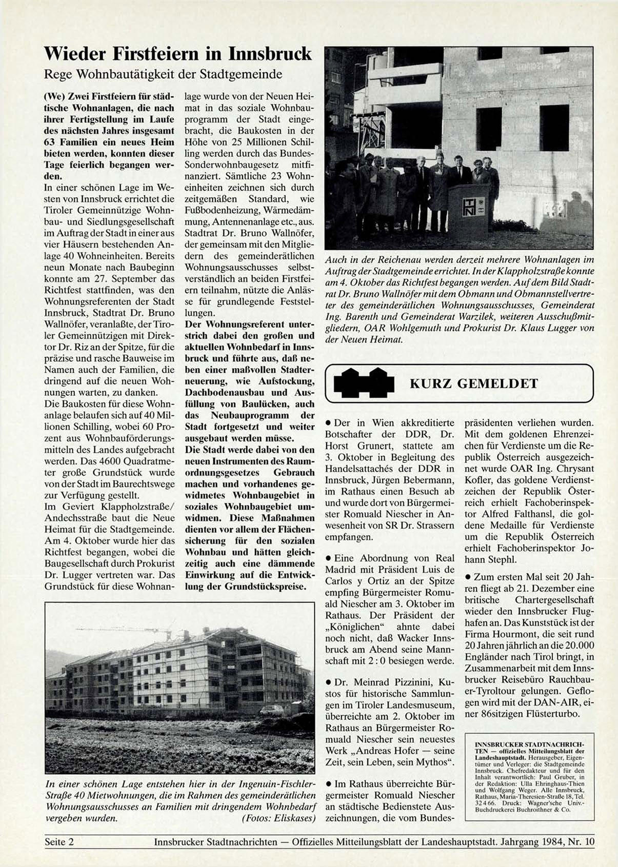 Innsbrucker Stadtnachrichten — Offizielles Mitteilungsblatt der Landeshauptstadt. Jahrgang 1984, Nr. 10