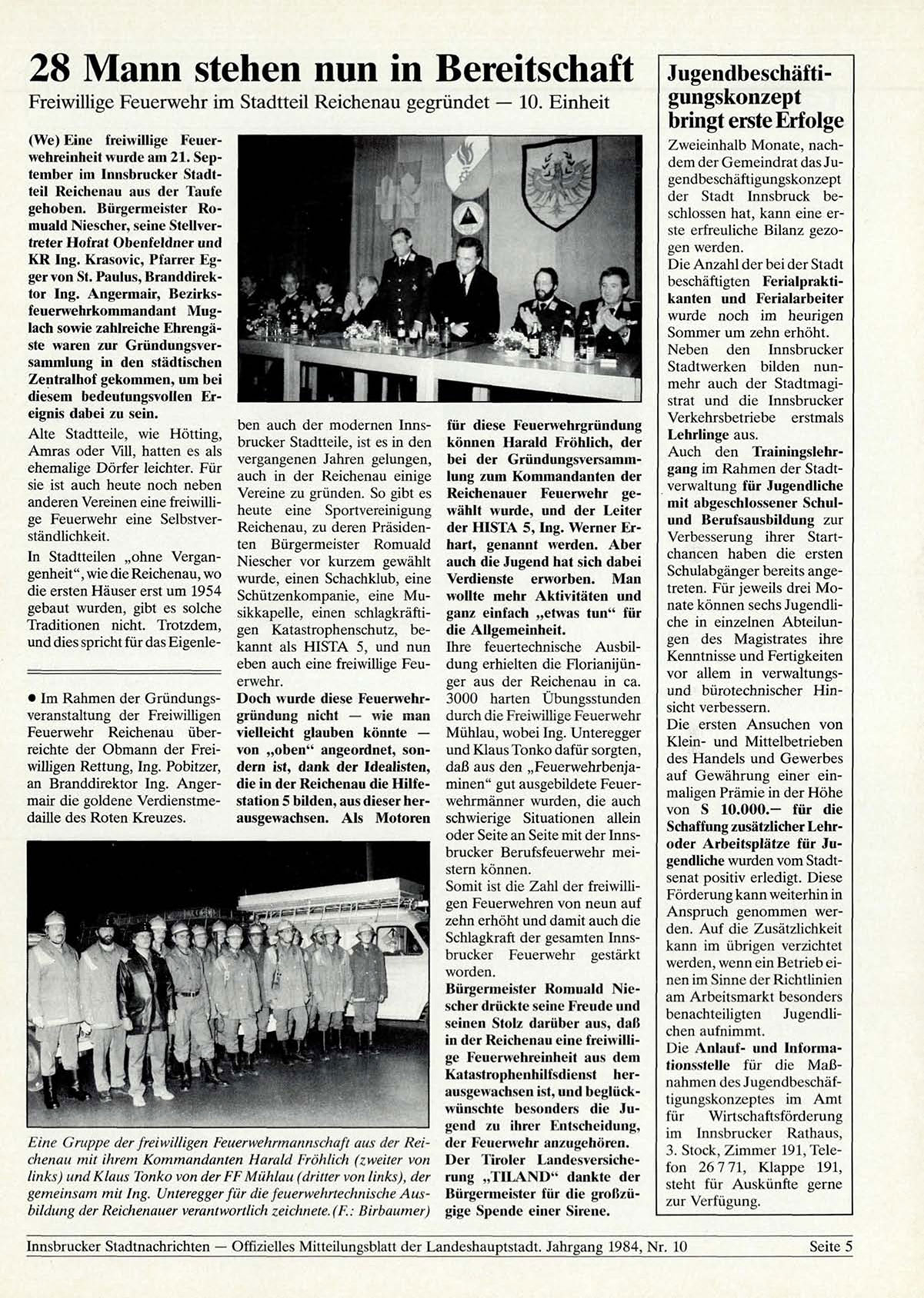 Innsbrucker Stadtnachrichten — Offizielles Mitteilungsblatt der Landeshauptstadt. Jahrgang 1984, Nr. 10