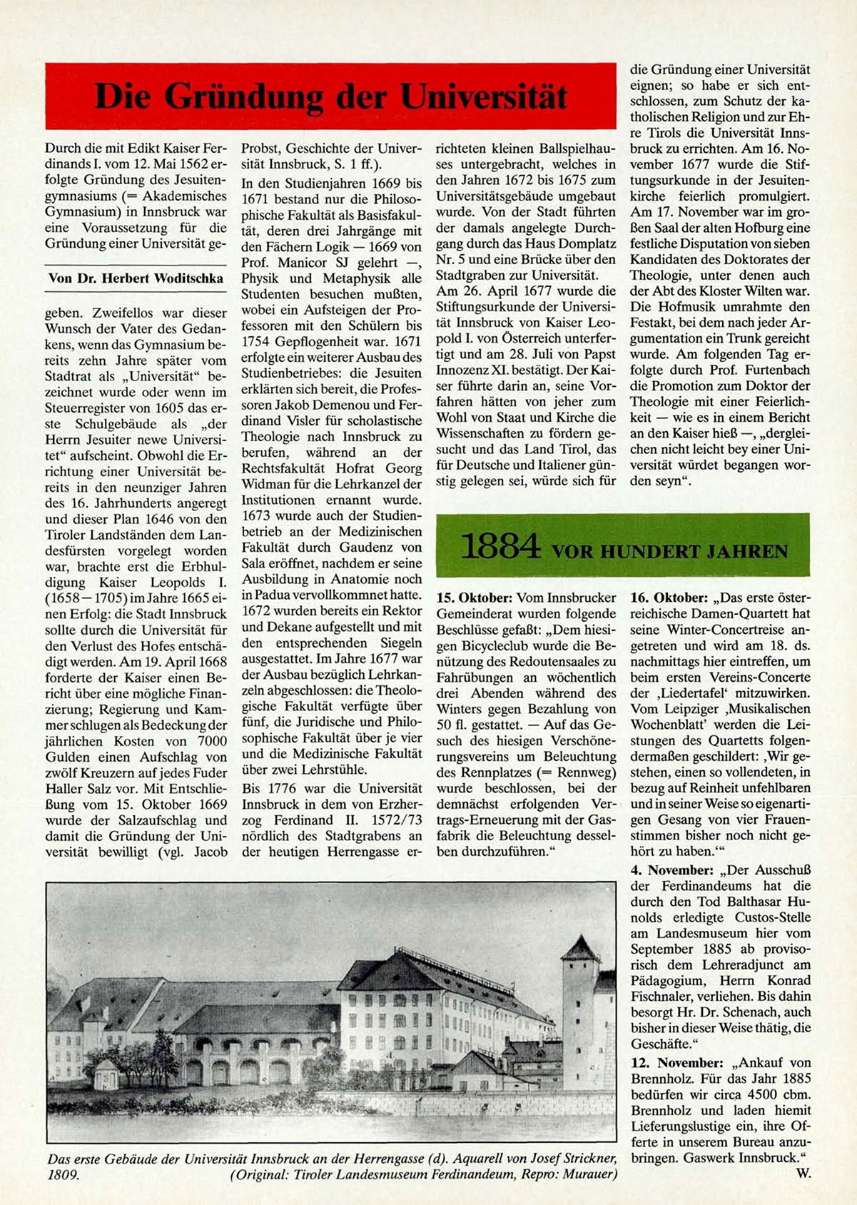eignen; so habe er sich entschlossen, zum Schutz der katholischen Religion und zur Ehre Tirols die Universität InnsDurch die mit Edikt Kaiser Fer- Probst, Geschichte der Univer- richteten kleinen Ballspielhau- bruck zu errichten. A m 16. Nodinands I. vom 12. Mai 1562 er- sität Innsbruck, S. 1 ff.).