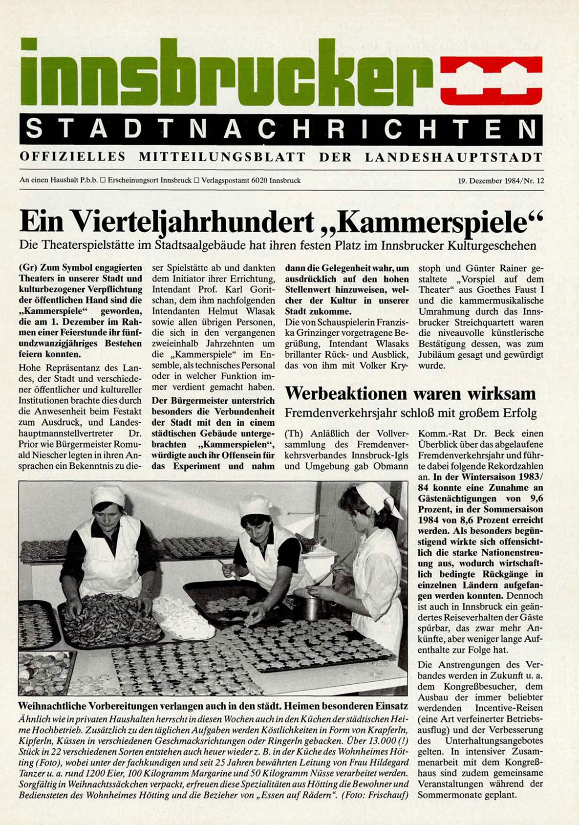 Ähnlich wie in privaten Haushalten herrscht in diesen Wochen auch in den Küchen der städtischen Hei- (eine Art verfeinerter Betriebsme Hochbetrieb. Zusätzlich zu den täglichen Auf gaben werden Köstlichkeiten in Form von Krapferln, ausflug) und der Verbesserung