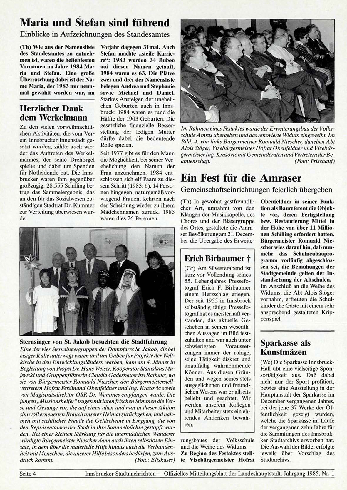 Innsbrucker Stadtnachrichten — Offizielles Mitteilungsblatt der Landeshauptstadt. Jahrgang 1985, Nr. 1