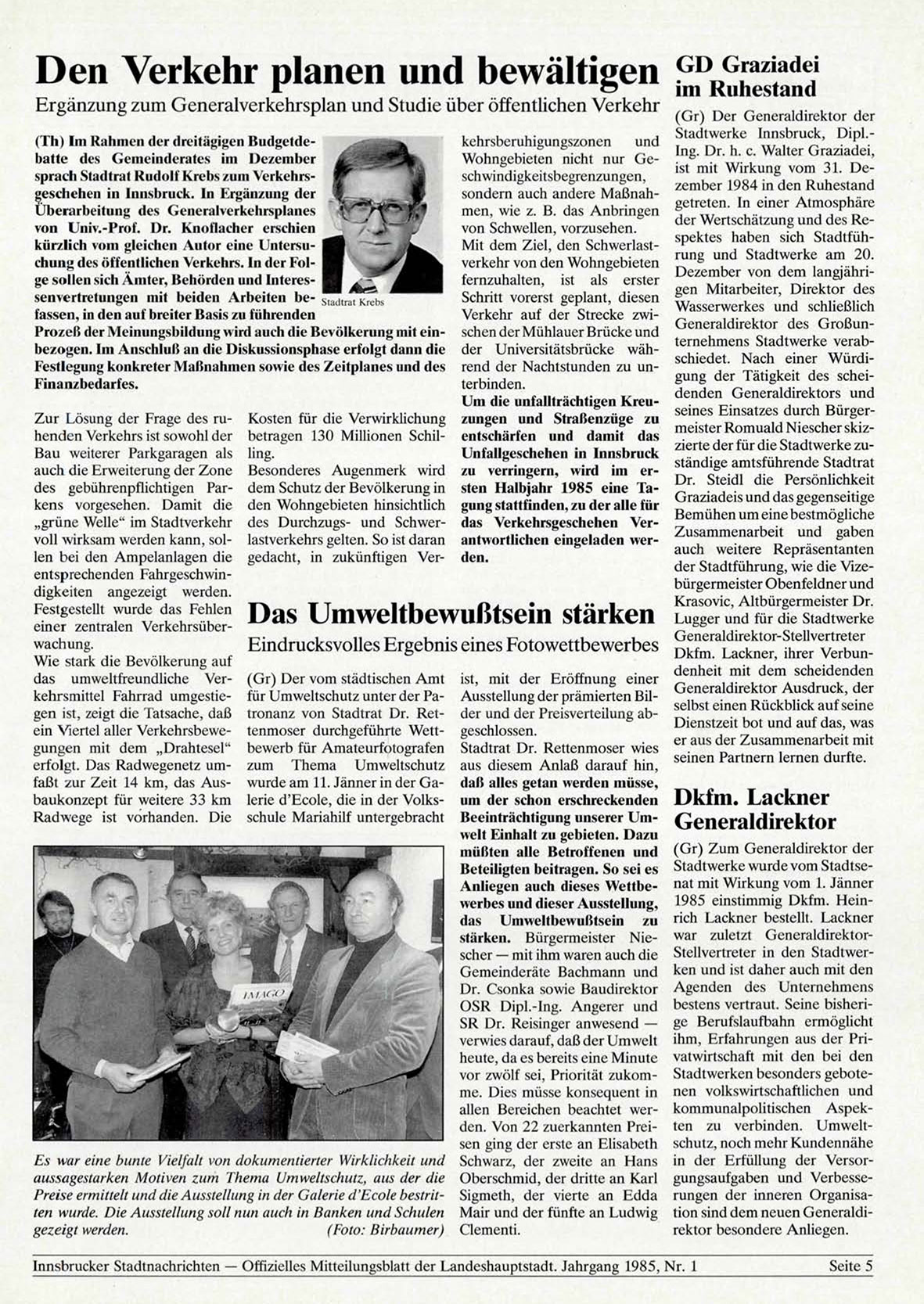 Innsbrucker Stadtnachrichten — Offizielles Mitteilungsblatt der Landeshauptstadt. Jahrgang 1985, Nr. 1