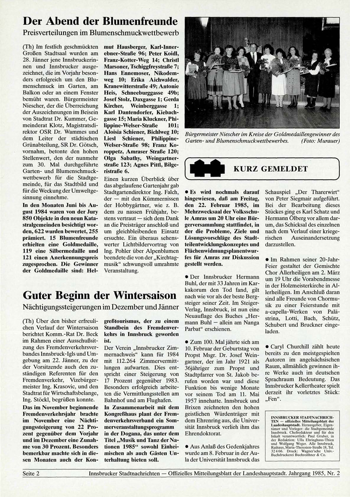 Innsbrucker Stadtnachrichten — Offizielles Mitteilungsblatt der Landeshauptstadt. Jahrgang 1985, Nr. 2