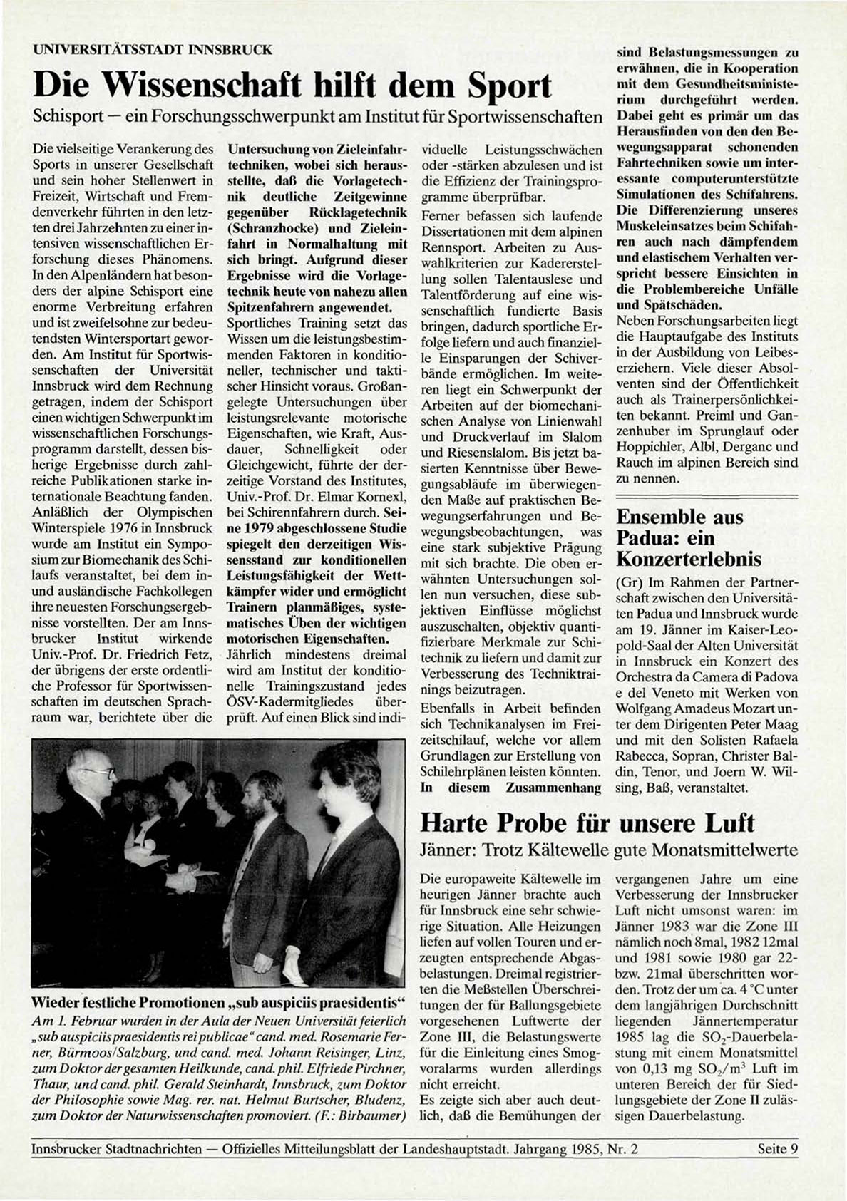 Innsbrucker Stadtnachrichten — Offizielles Mitteilungsblatt der Landeshauptstadt. Jahrgang 1985, Nr. 2