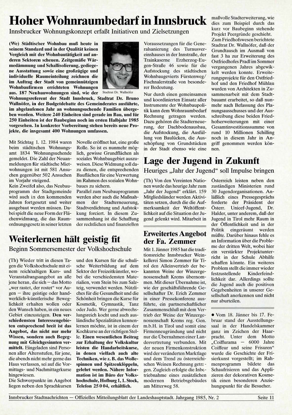 Innsbrucker Stadtnachrichten — Offizielles Mitteilungsblatt der Landeshauptstadt. Jahrgang 1985, Nr. 2