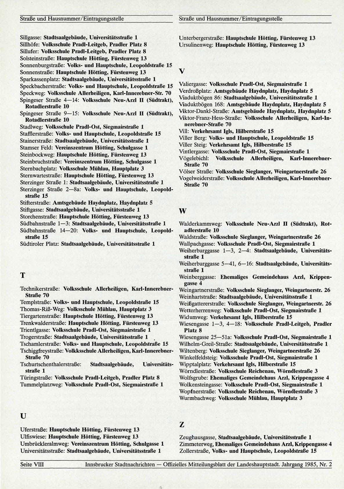 Innsbrucker Stadtnachrichten — Offizielles Mitteilungsblatt der Landeshauptstadt. Jahrgang 1985, Nr. 2