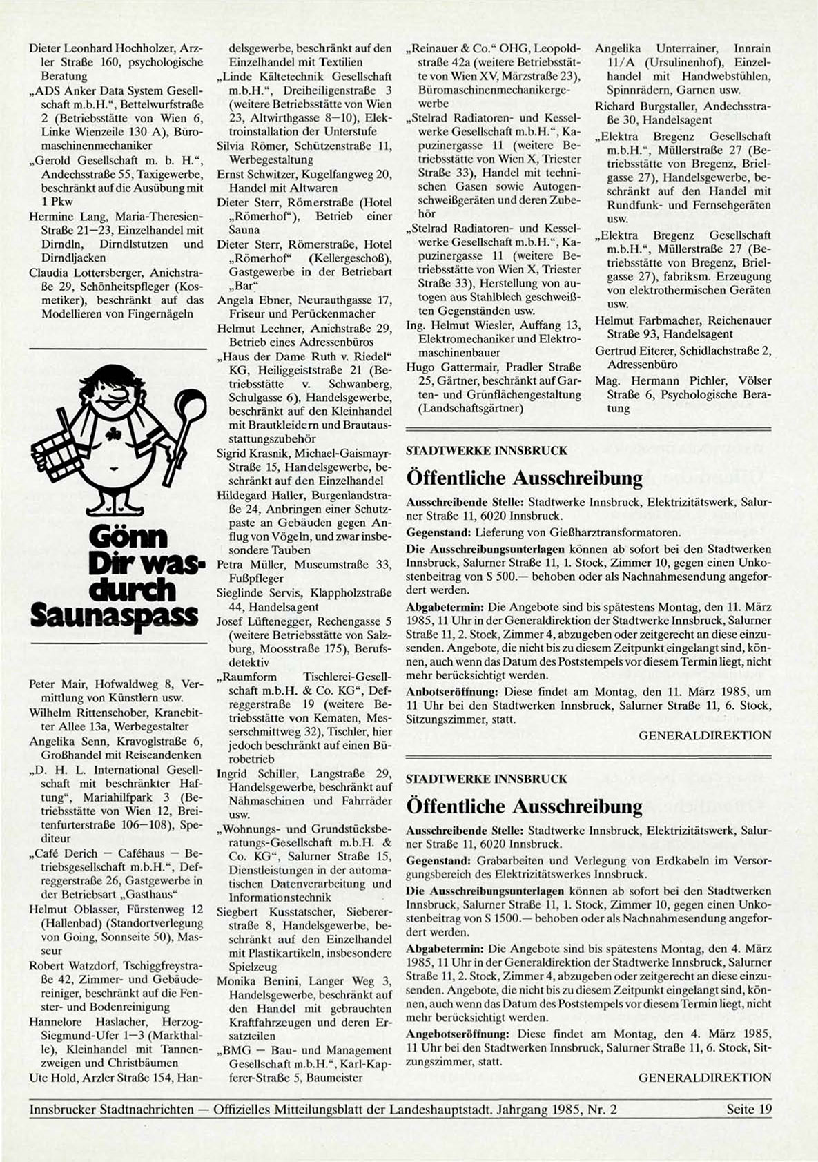 Innsbrucker Stadtnachrichten — Offizielles Mitteilungsblatt der Landeshauptstadt. Jahrgang 1985, Nr. 2
