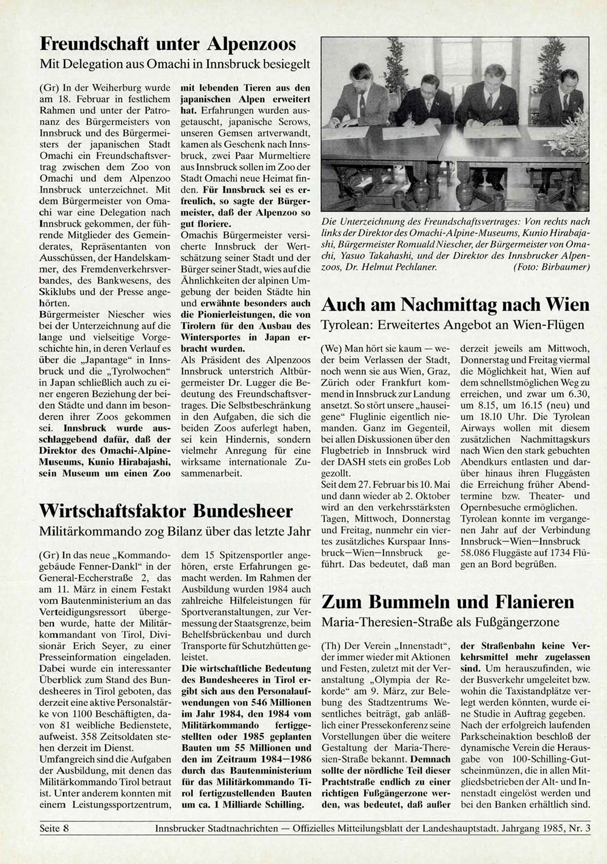 Stadt Omachi neue Heimat finden. Für Innsbruck sei es erfreulich, so sagte der Bürgermeister, daß der Alpenzoo so