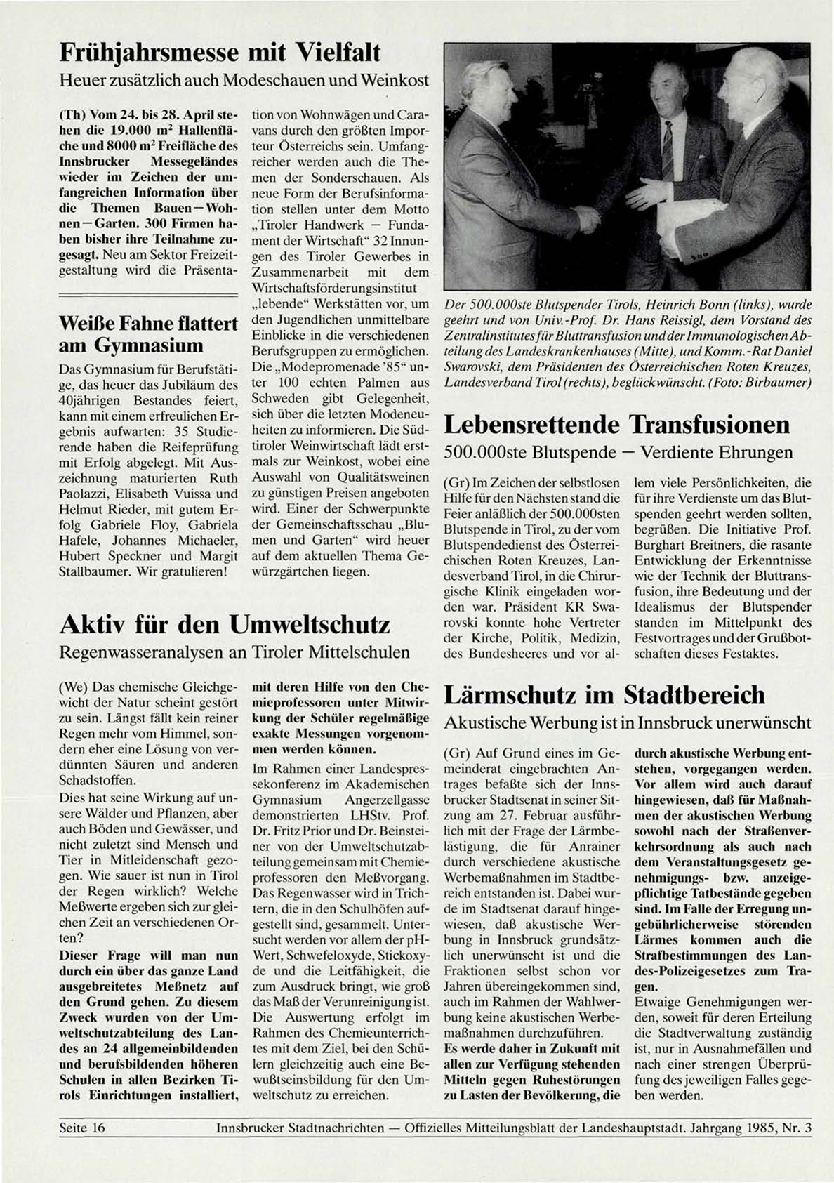Innsbrucker Stadtnachrichten — Offizielles Mitteilungsblatt der Landeshauptstadt. Jahrgang 1985, Nr. 3