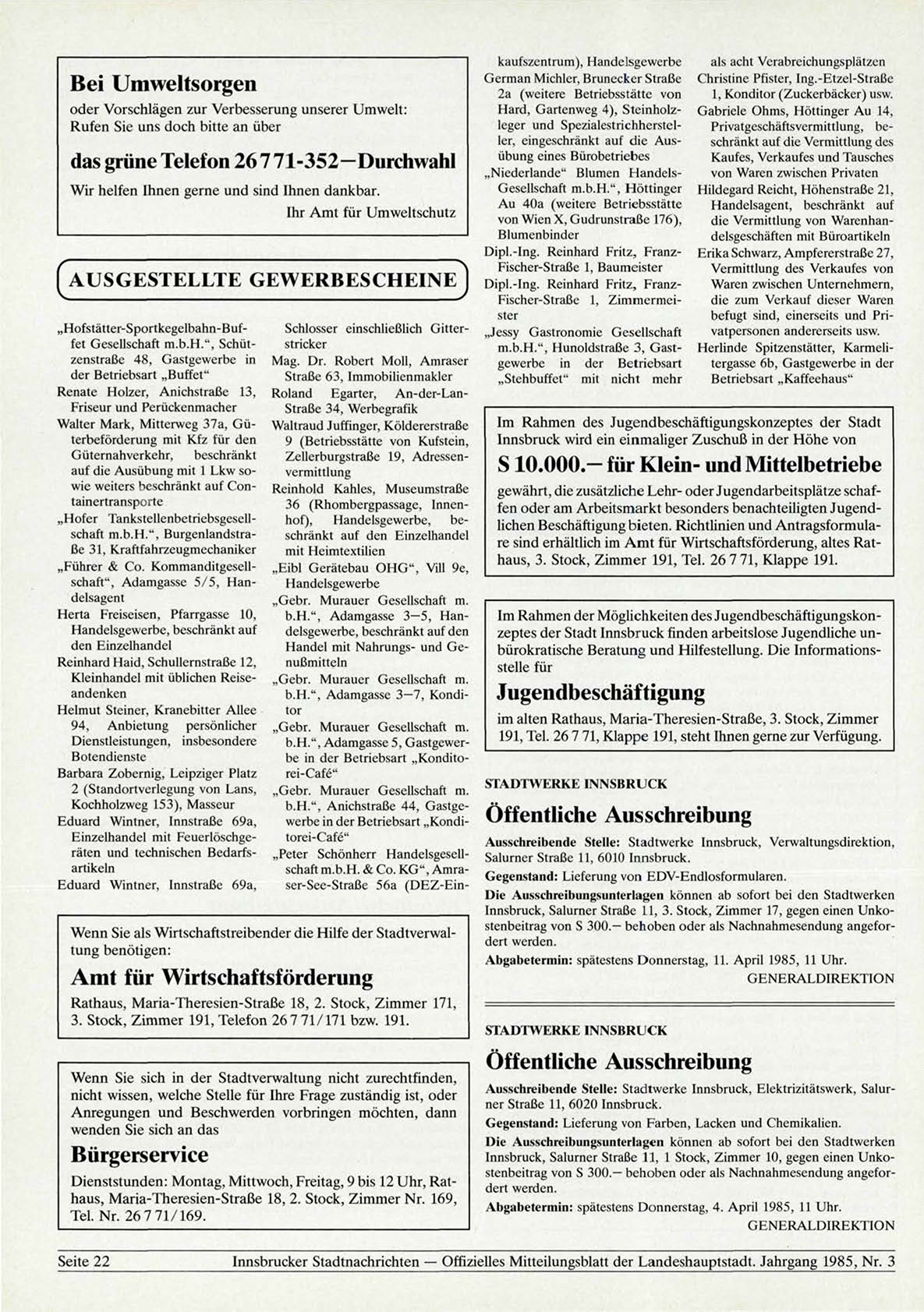 Innsbrucker Stadtnachrichten — Offizielles Mitteilungsblatt der Landeshauptstadt. Jahrgang 1985, Nr. 3