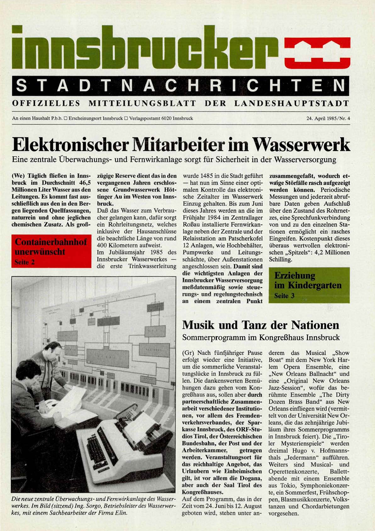 Im Jubiläumsjahr 1985 desPumpwerke und LeitungsInnsbrucker Wasserwerkes — schächte, über Außenstationen