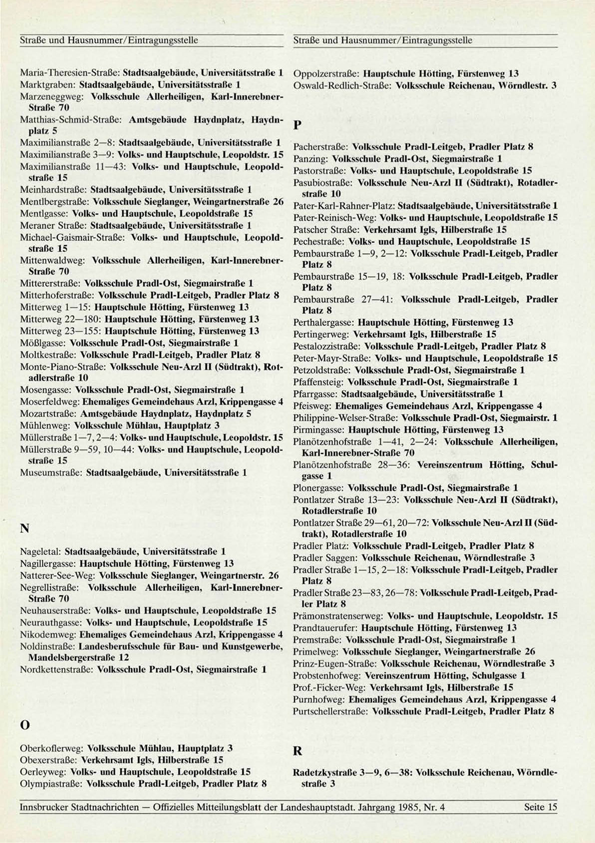 Innsbrucker Stadtnachrichten — Offizielles Mitteilungsblatt der Landeshauptstadt. Jahrgang 1985, Nr. 4