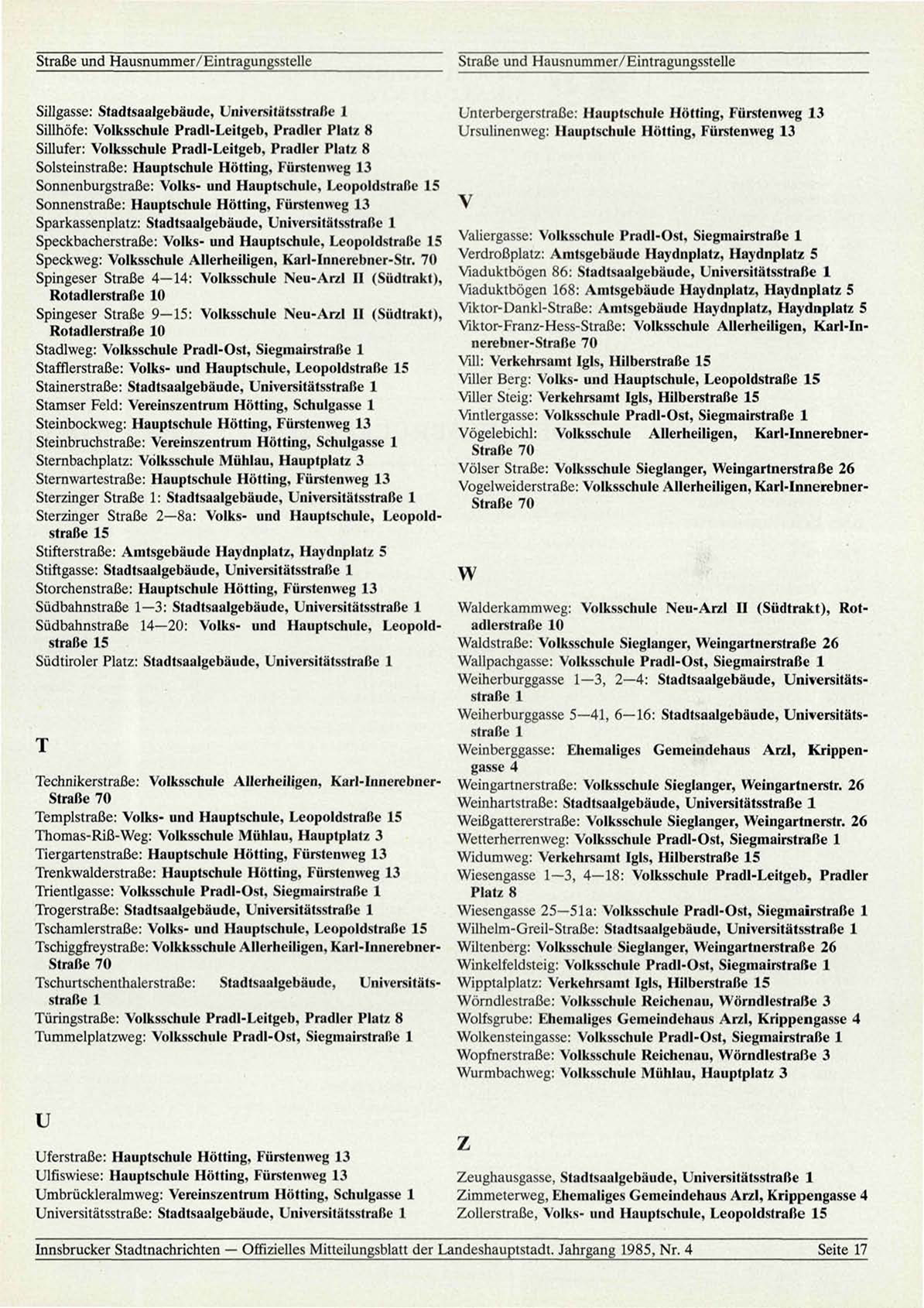 Innsbrucker Stadtnachrichten — Offizielles Mitteilungsblatt der Landeshauptstadt. Jahrgang 1985, Nr. 4