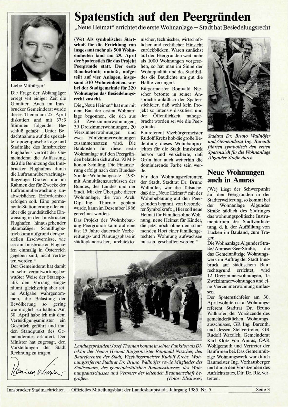 Innsbrucker Stadtnachrichten — Offizielles Mitteilungsblatt der Landeshauptstadt. Jahrgang 1985, Nr. 5