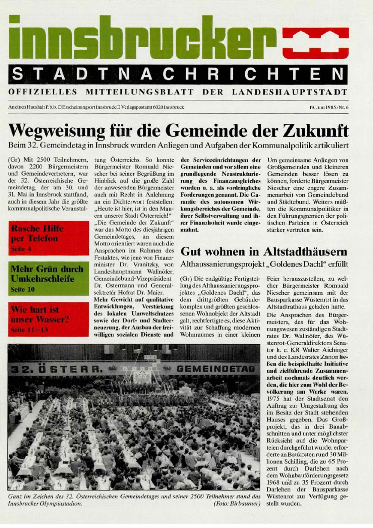 jektes „Goldenes Dachl“, das dem drittgrößten Gebäudekomplex und größten geschlossenen Wohnobjekt der Altstadt galt, rechtfertigte es, diese Aktivität zur Schaffung modernen Wohnraumes in einer kleinen Um gemeinsame Anliegen von Großgemeinden und kleineren