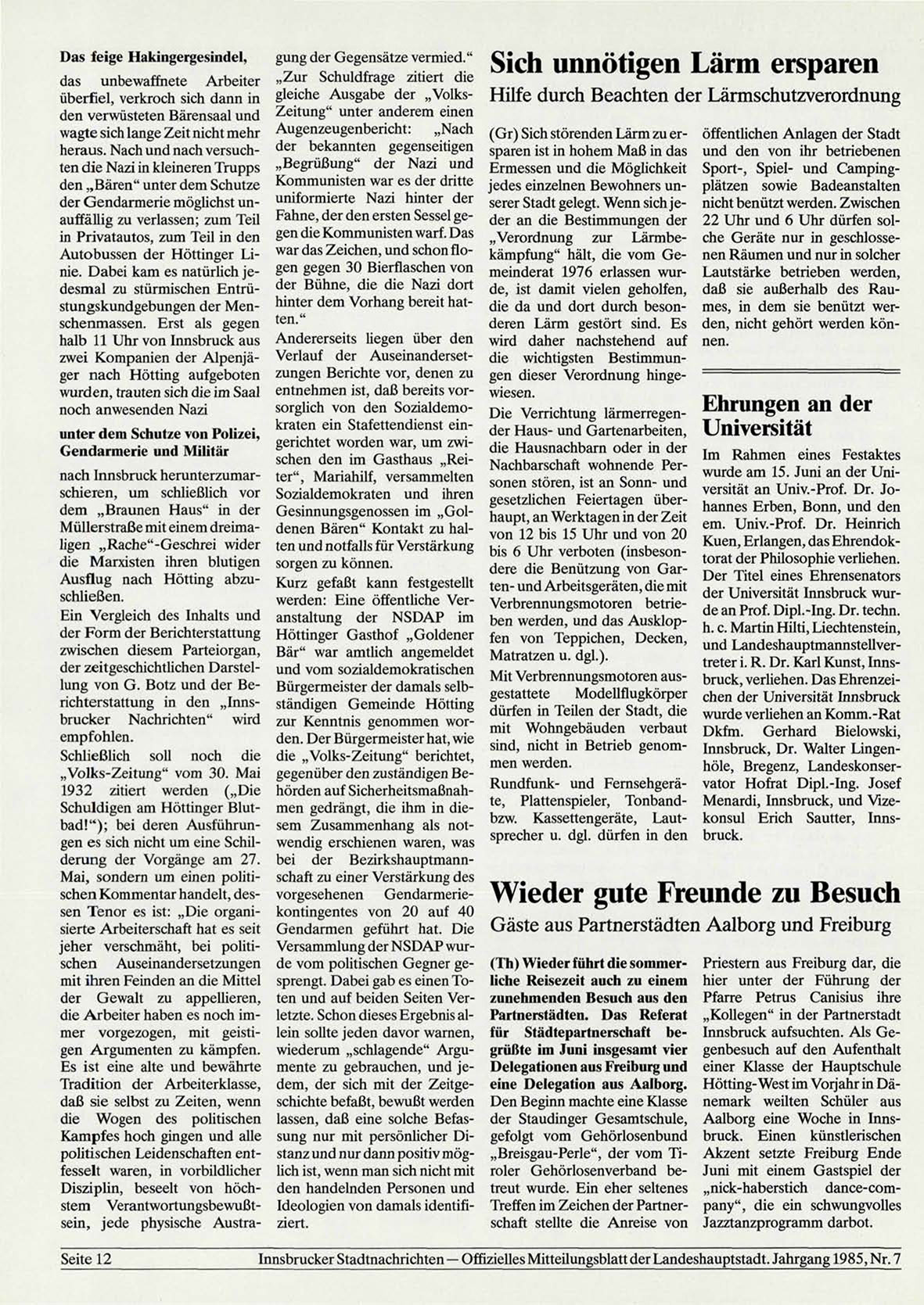 Innsbrucker Stadtnachrichten — Offizielles Mitteilungsblatt der Landeshauptstadt. Jahrgang 1985, Nr. 7