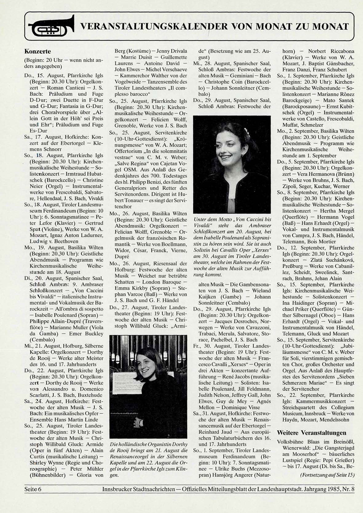 Innsbrucker Stadtnachrichten — Offizielles Mitteilungsblatt der Landeshauptstadt. Jahrgang 1985, Nr. 8