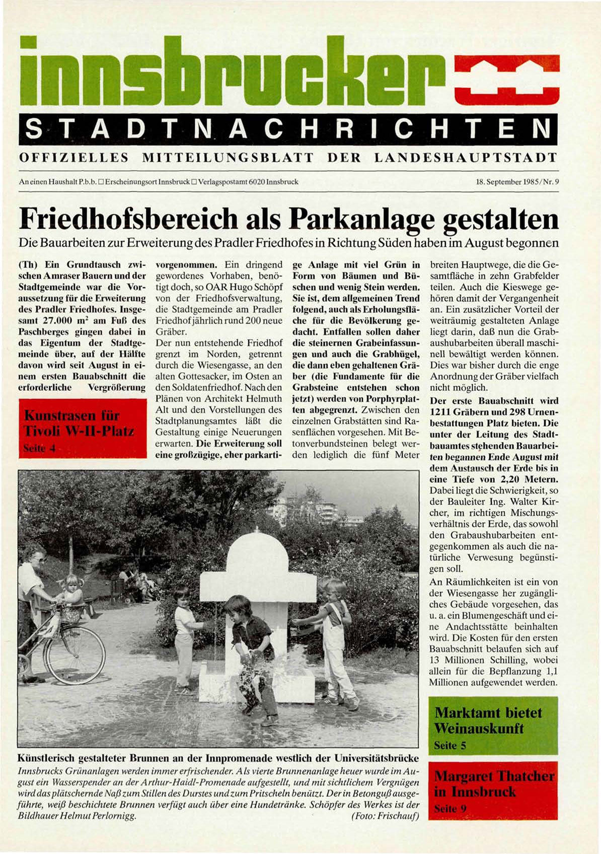 Innsbrucks Grünanlagen werden immer erfrischender. Als vierte Brunnenanlage heuer wurde im August ein Wasserspender an der Arthur-Haidl-Promenade aufgestellt, und mit sichtlichem Vergnügen irgaret Thatcher