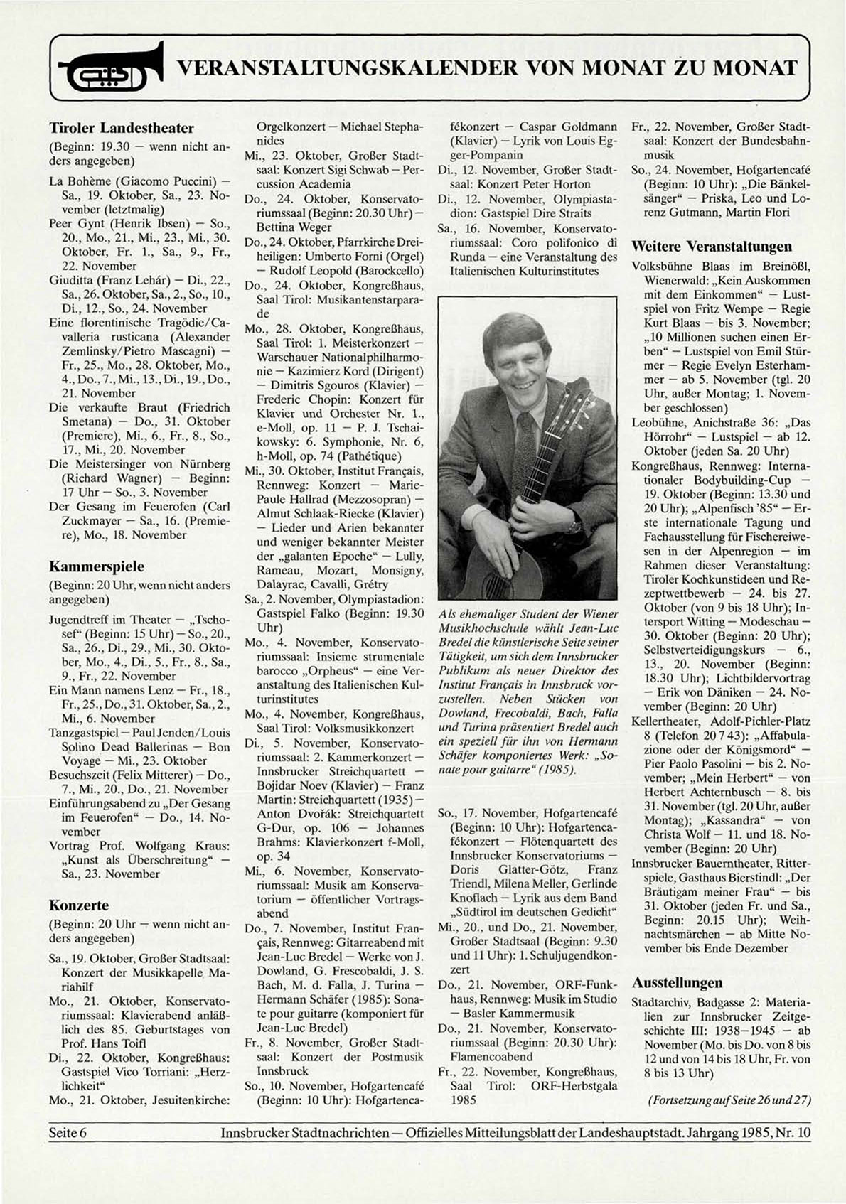 Innsbrucker Stadtnachrichten — Offizielles Mitteilungsblatt der Landeshauptstadt. Jahrgang 1985, Nr. 10