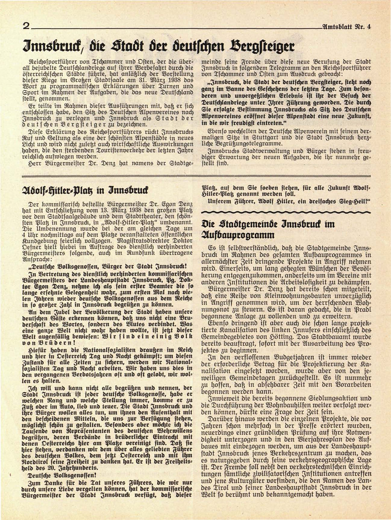 „Deutsche Volksgenossen. Bürger der Stadt Innsbruck!