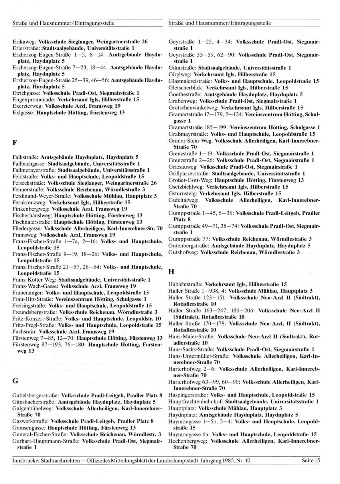 Innsbrucker Stadtnachrichten — Offizielles Mitteilungsblatt der Landeshauptstadt. Jahrgang 1985, Nr. 10