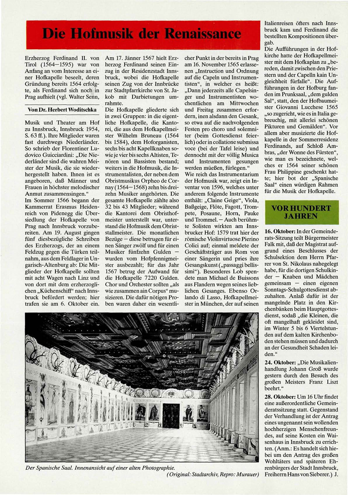 und Trommel. — Auch berühmte Solisten wirkten am Innsbrucker Hof: 1579 trat hier der