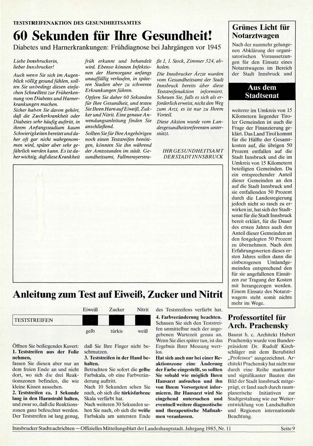Innsbrucker Stadtnachrichten — Offizielles Mitteilungsblatt der Landeshauptstadt. Jahrgang 1985, Nr. 11