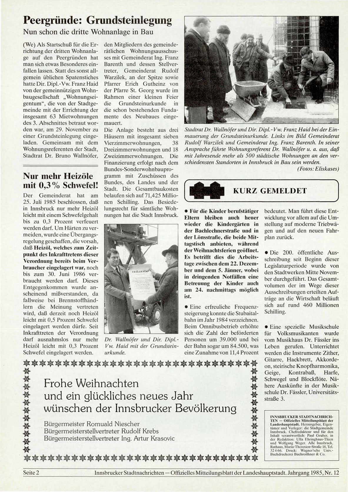 Innsbrucker Stadtnachrichten — Offizielles Mitteilungsblatt der Landeshauptstadt. Jahrgang 1985, Nr. 12