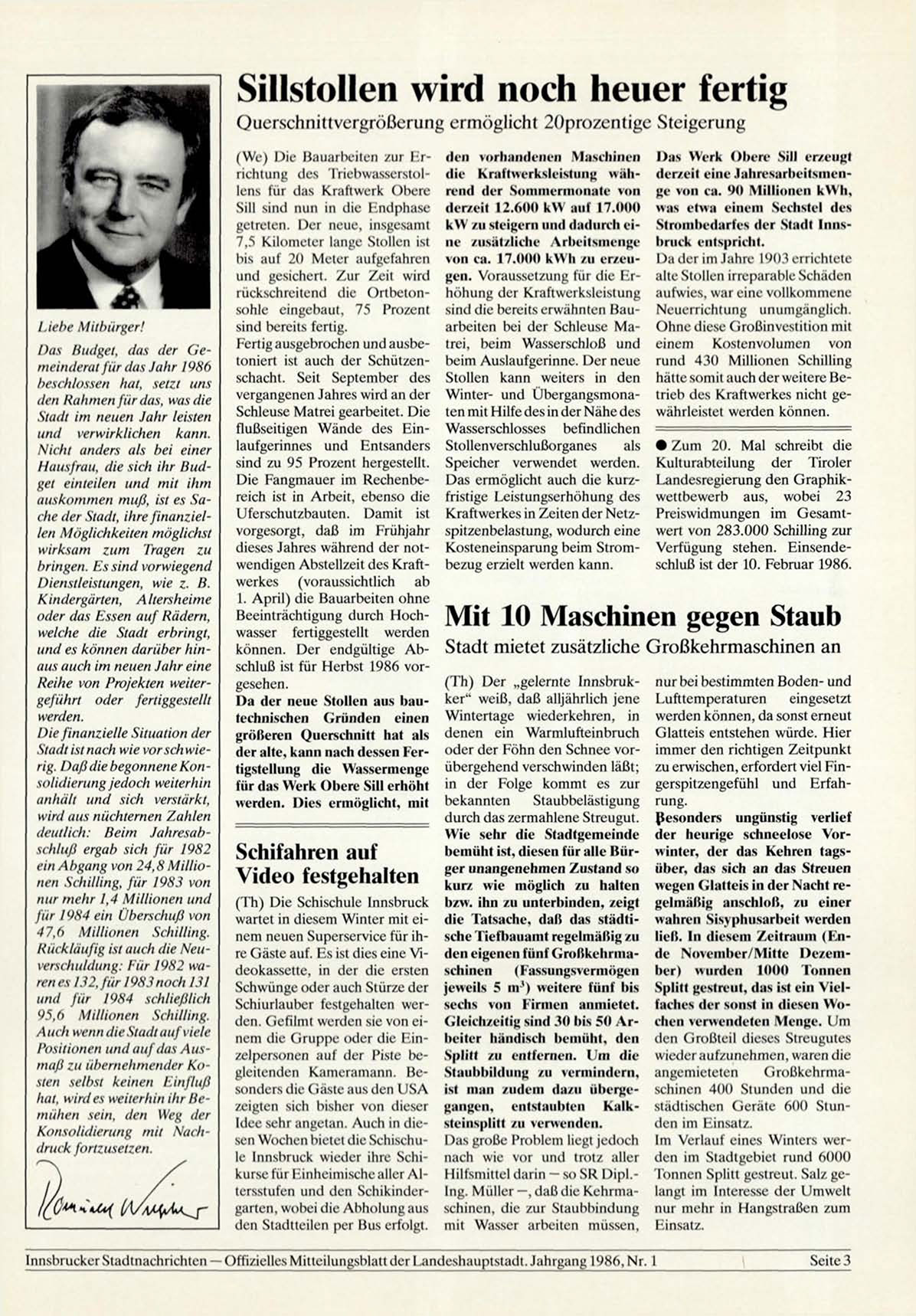 Innsbrucker Stadtnachrichten — Offizielles Mitteilungsblatt der Landeshauptstadt. Jahrgang 1986, Nr. 1
