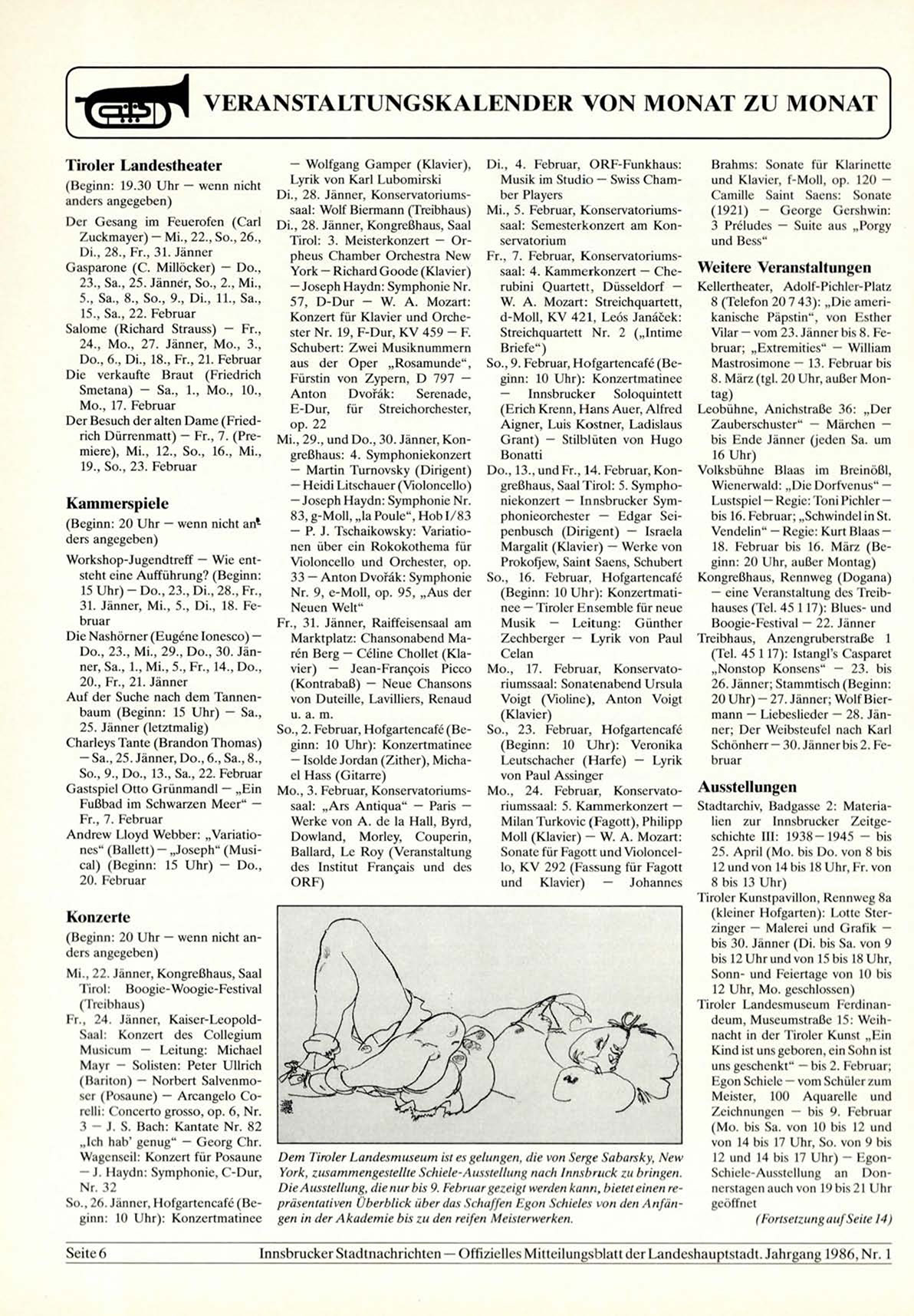 Innsbrucker Stadtnachrichten — Offizielles Mitteilungsblatt der Landeshauptstadt. Jahrgang 1986, Nr. 1
