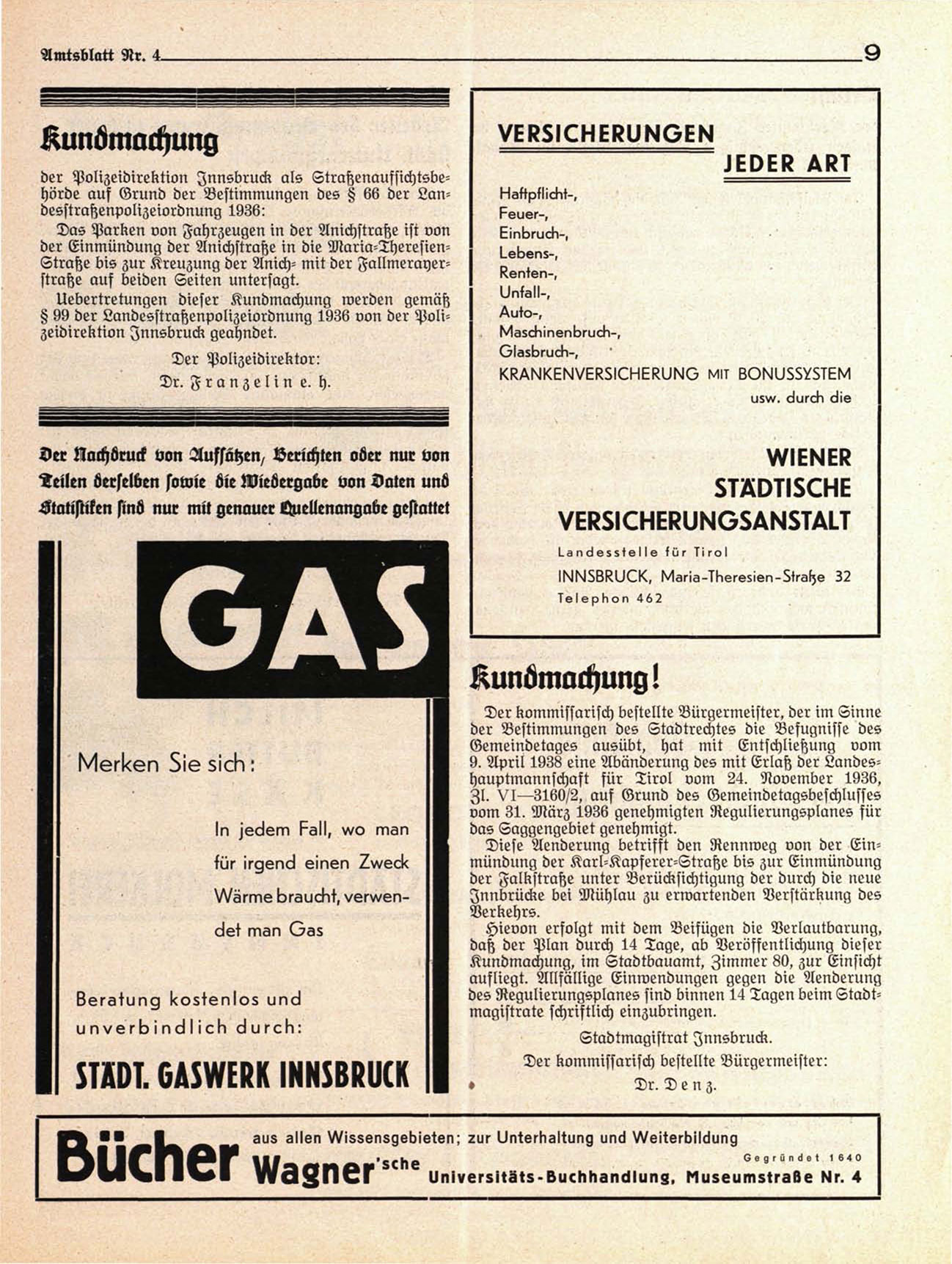§ 99 der Landesstraßenpolizeiordnung 1936 von der Polizeidirektion Innsbruck geahndet.