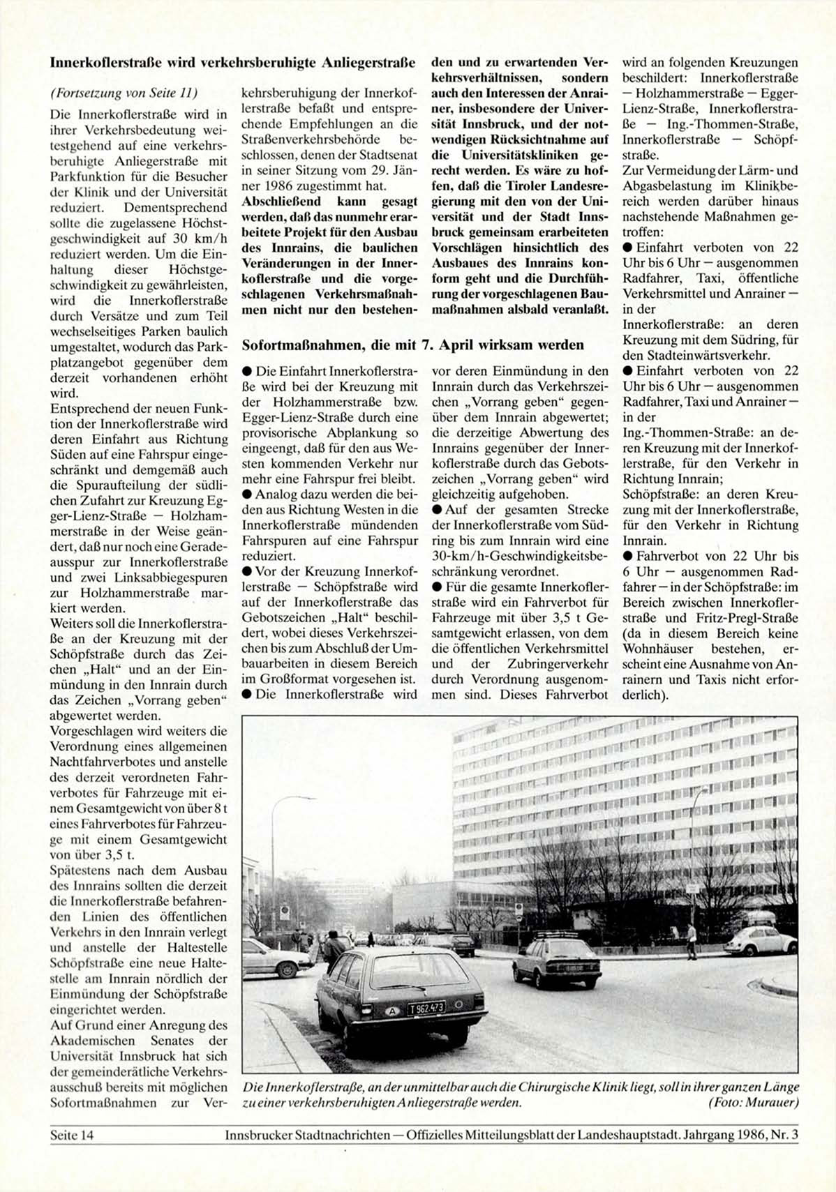 Innsbrucker Stadtnachrichten — Offizielles Mitteilungsblatt der Landeshauptstadt. Jahrgang 1986, Nr. 3