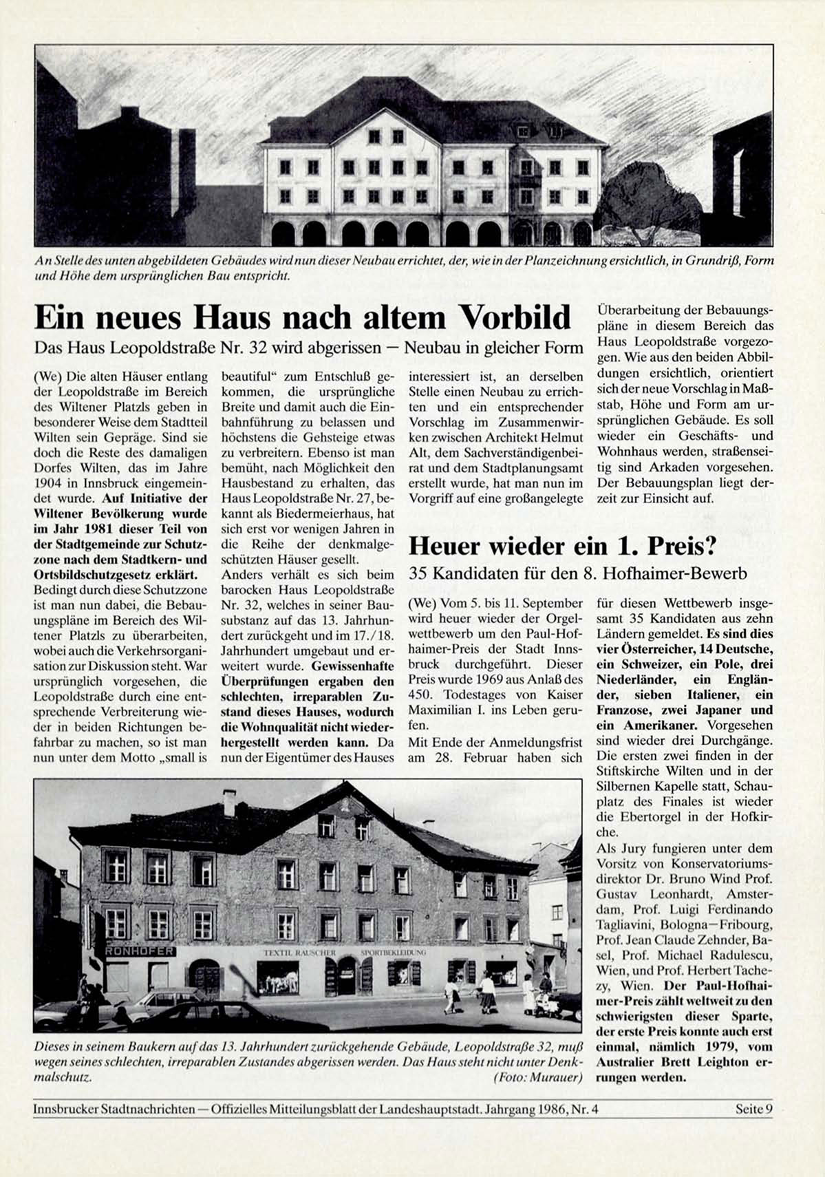 Innsbrucker Stadtnachrichten — Offizielles Mitteilungsblatt der Landeshauptstadt. Jahrgang 1986, Nr. 4