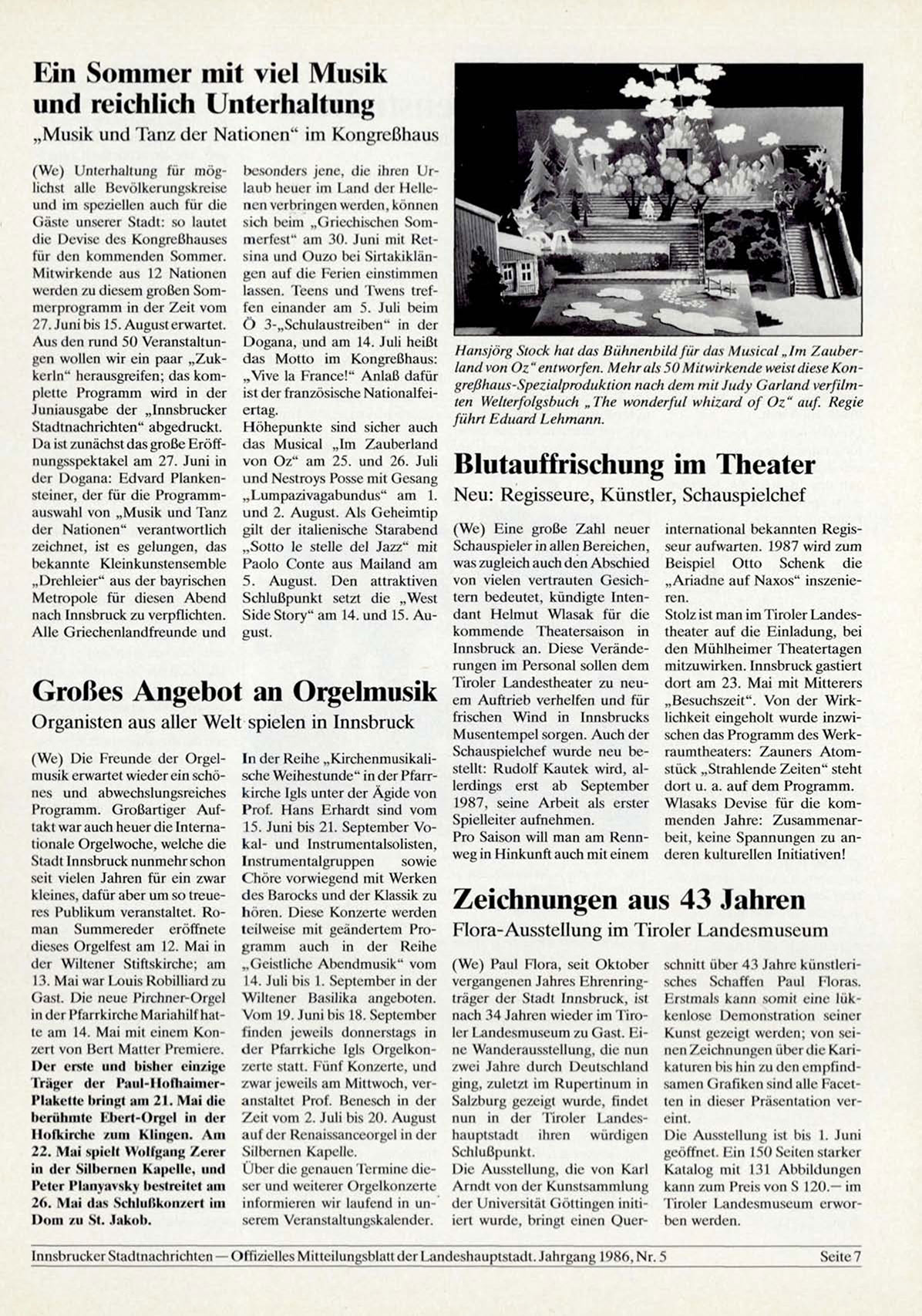 I n n s b r u c k e r S t a d t n a c h r i c h t e n — O f f i z i e l l e s M i t t e i l u n g s b l a t t d e r L a n d e s h a u p t s t a d t . J a h r g a n g 1986, N r . 5