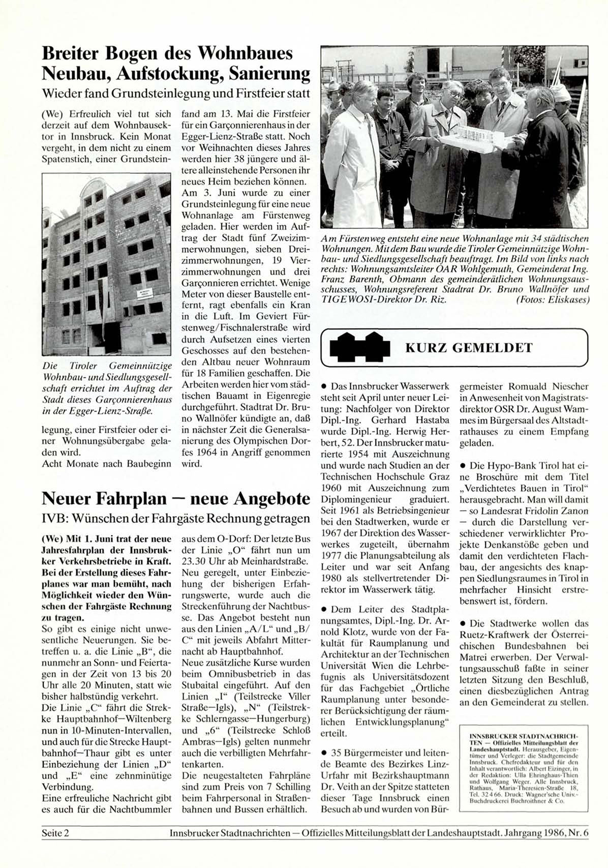 Innsbrucker Stadtnachrichten — Offizielles Mitteilungsblatt der Landeshauptstadt. Jahrgang 1986, Nr. 6