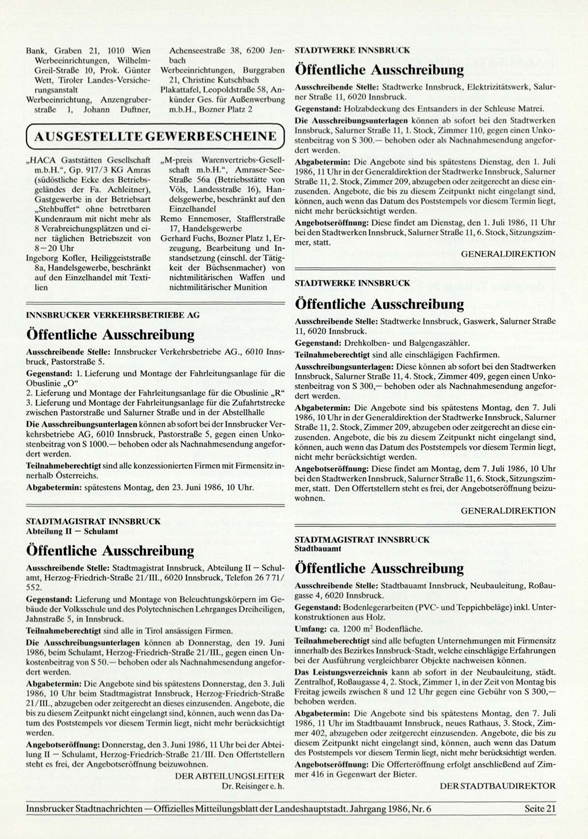 1986, 10 U h r beim Stadtmagistrat Innsbruck, H e r / o g - b r i c d r i c h - S t r a ß c