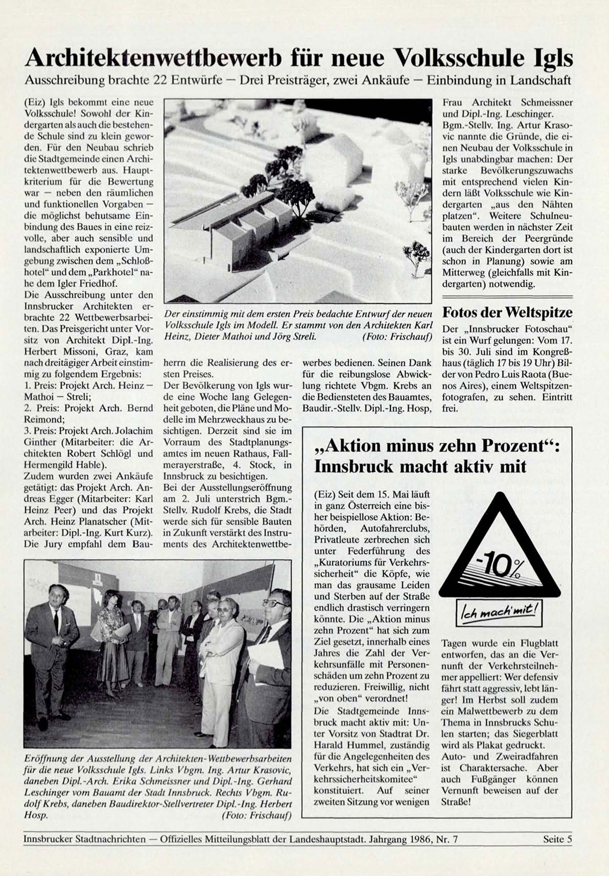 Innsbrucker Stadtnachrichten — Offizielles Mitteilungsblatt der Landeshauptstadt. Jahrgang 1986, N r . 7