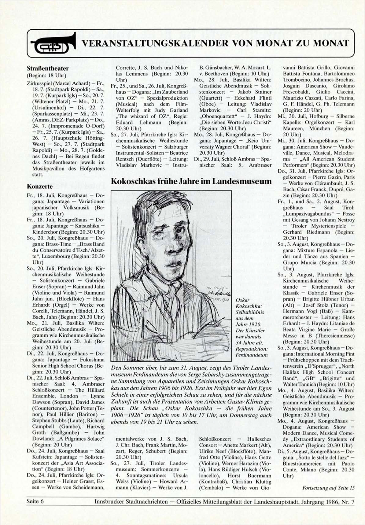 Den Sommer über, bis zum 31. August, zeigt das Tiroler Landesmuseum Ferdinandeum die von Serge Sabarsky zusammengetragene Sammlung von Aquarellen und Zeichnungen Oskar Kokoschkas aus den Jahren 1906 bis 1926. Erst im Frühjahr war hier Egon