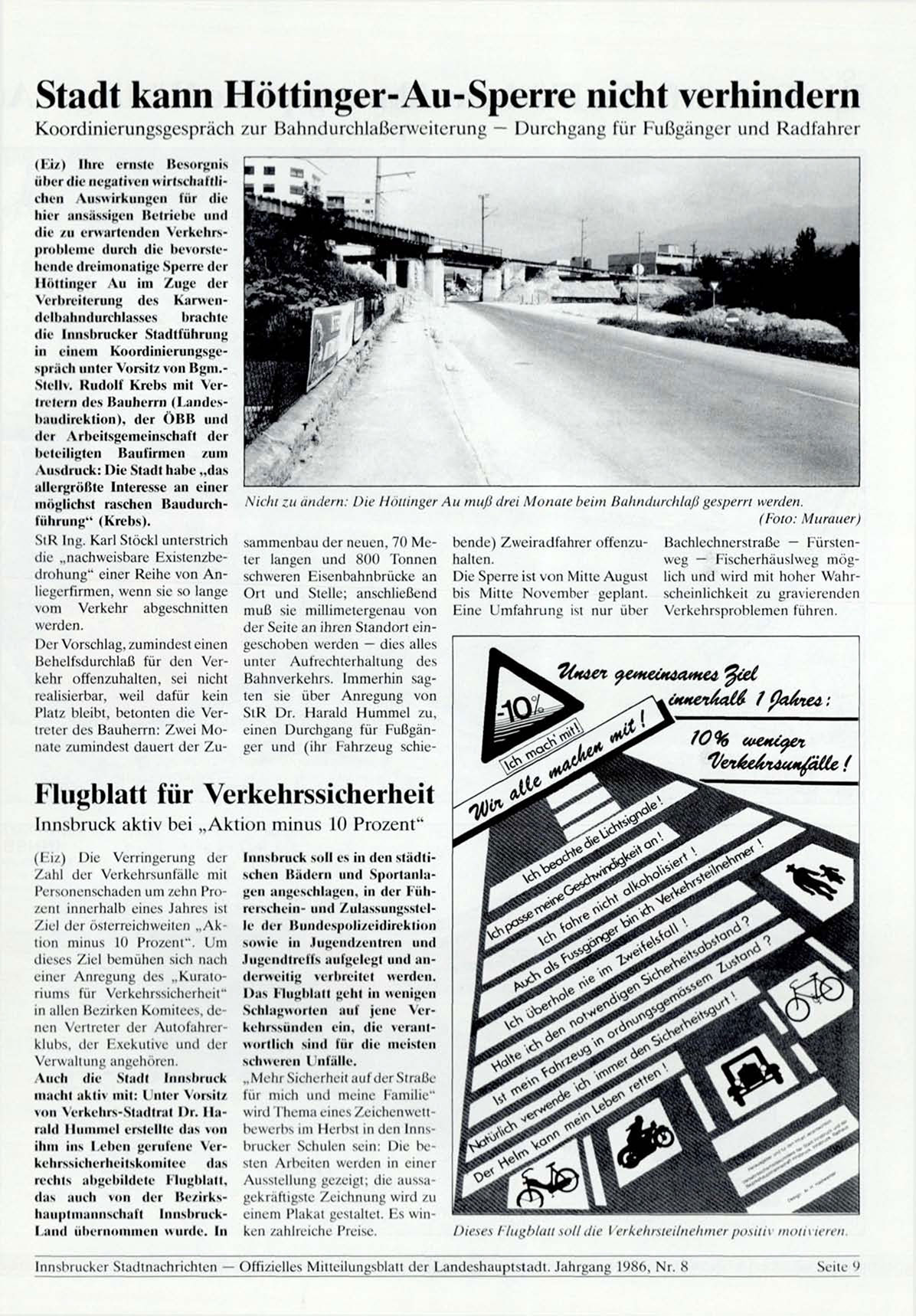 Innsbrucker Stadtnachrichten — Offizielles Mitteilungsblatt der Landeshauptstadt. Jahrgang 1986, Nr. 8
