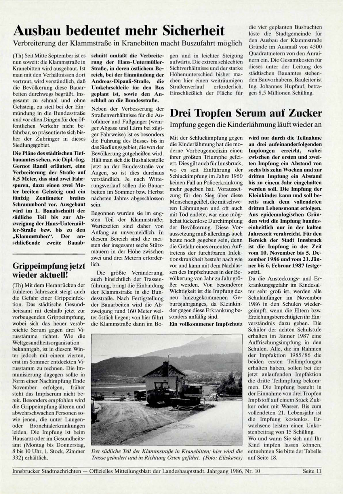 Innsbrucker Stadtnachrichten — Offizielles Mitteilungsblatt der Landeshauptstadt. Jahrgang 1986, Nr. 10