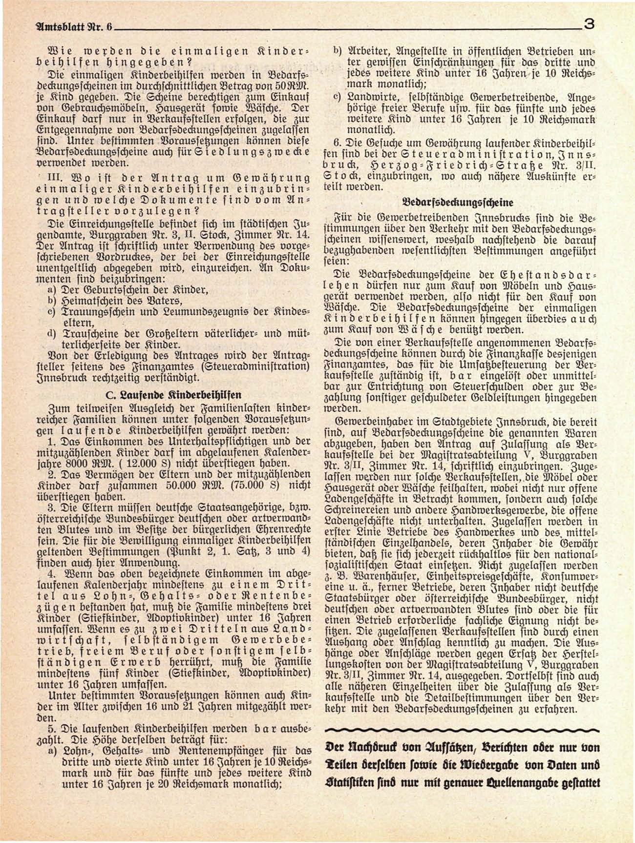 6. Die Gesuche um Gewährung laufender Kinderbeihilfen sind bei der S t e u e r a d m i n i st r a t i o n , I n n s bruck, H e r z o g - F r i e d r i c h - S t r a ß e Nr. 3/H.