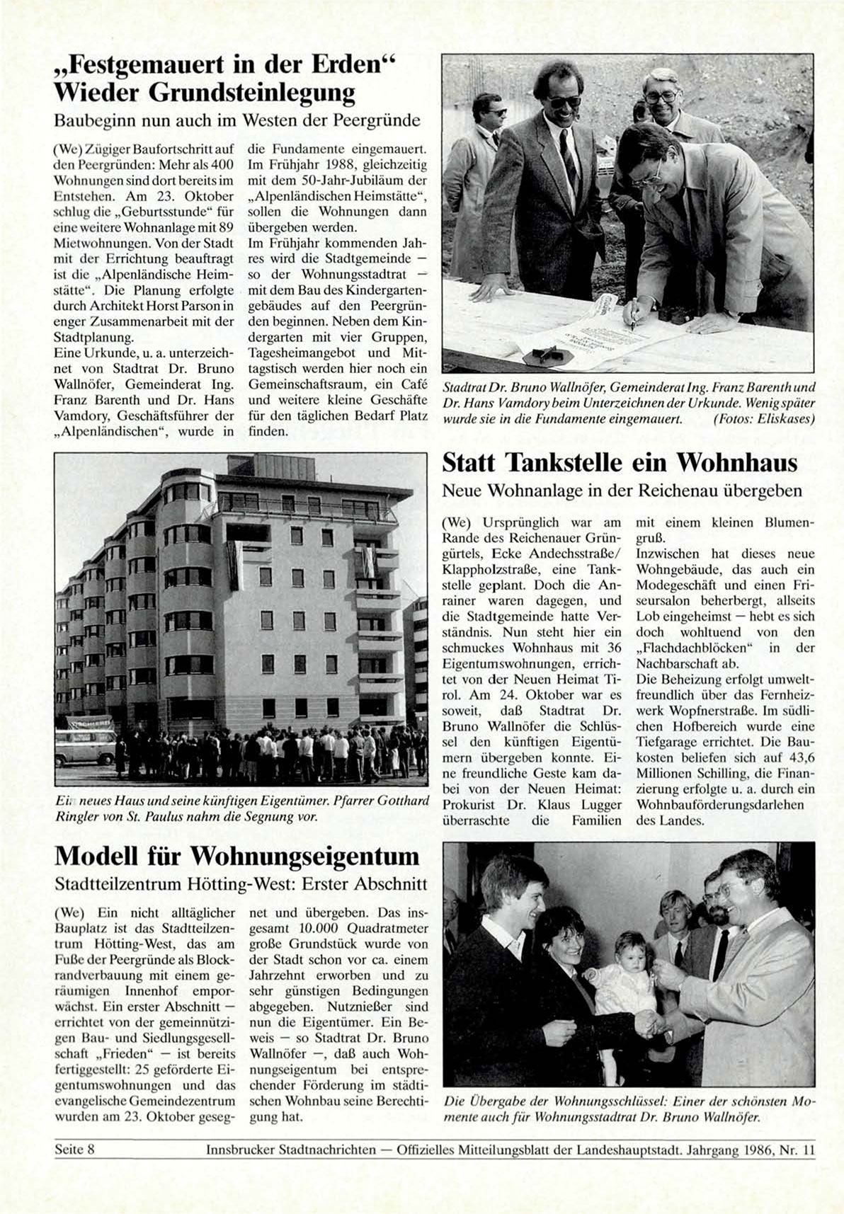Innsbrucker Stadtnachrichten — Offizielles Mitteilungsblatt der Landeshauptstadt. Jahrgang 1986, Nr. 11