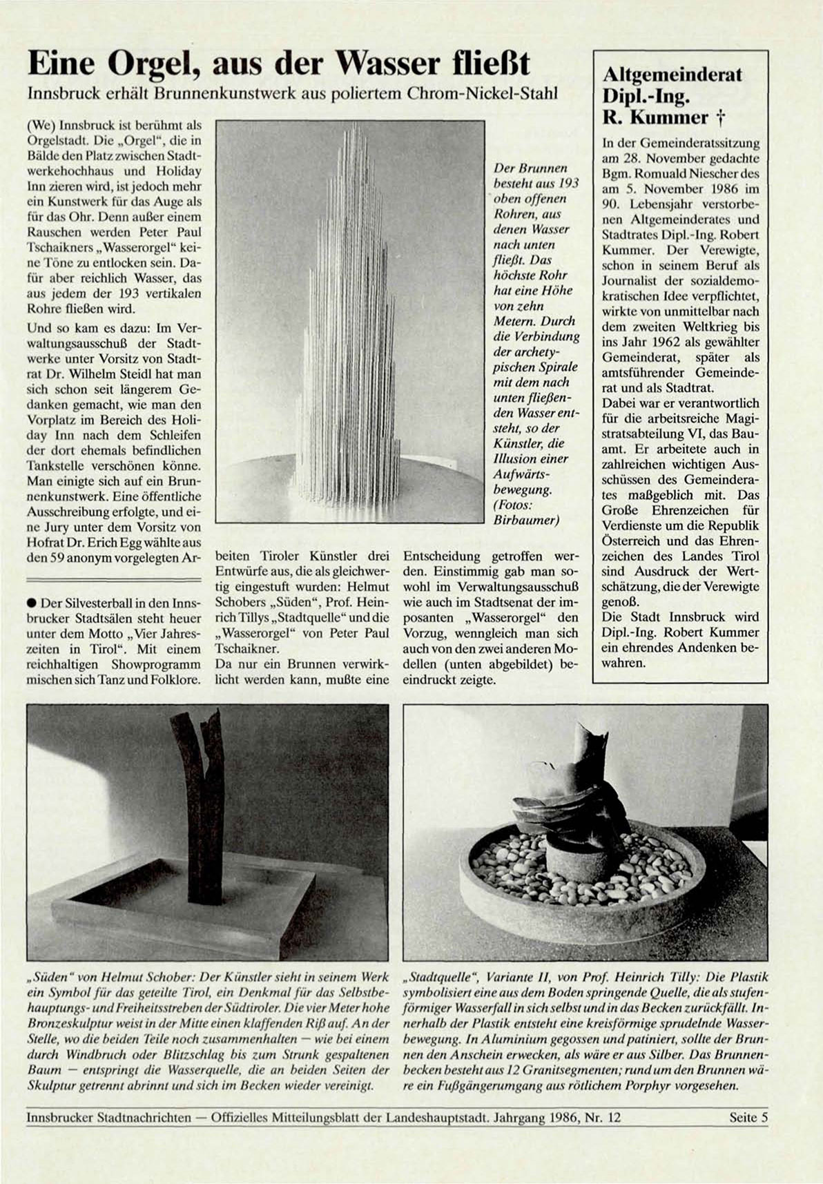 Innsbrucker Stadtnachrichten — Offizielles Mitteilungsblatt der Landeshauptstadt. Jahrgang 1986, Nr. 12