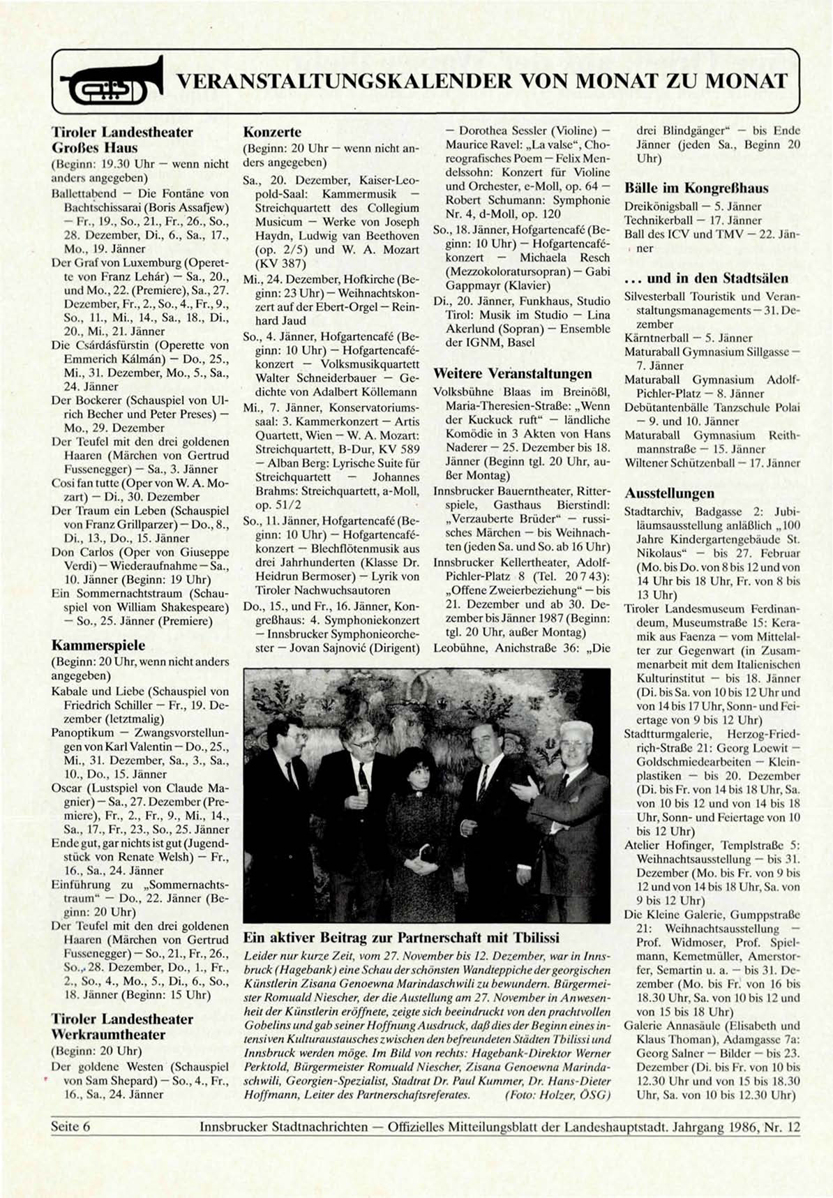 Innsbrucker Stadtnachrichten — Offizielles Mitteilungsblatt der Landeshauptstadt. Jahrgang 1986, Nr. 12