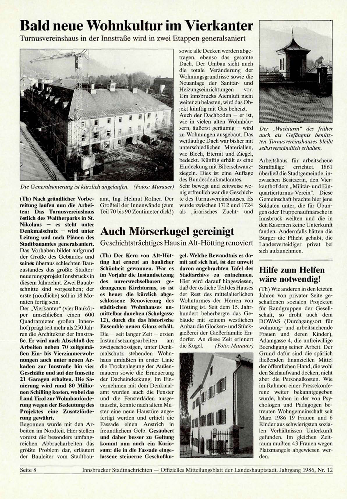 Innsbrucker Stadtnachrichten — Offizielles Mitteilungsblatt der Landeshauptstadt. Jahrgang 1986, Nr. 12
