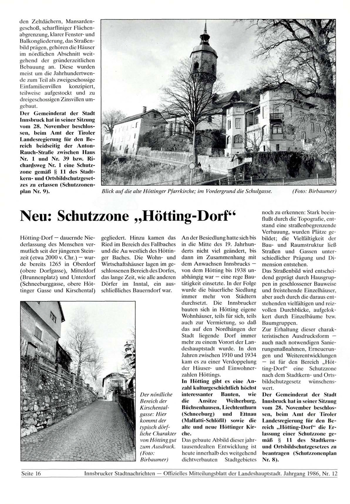 — ist für den Bereich „Hötting-Dorf" eine Schutzzone
