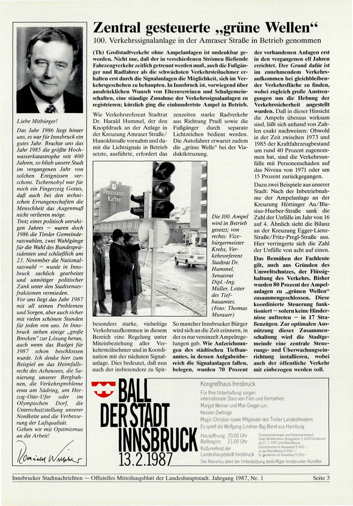 Innsbrucker Stadtnachrichten — Offizielles Mitteilungsblatt der Landeshauptstadt. Jahrgang 1987, Nr.