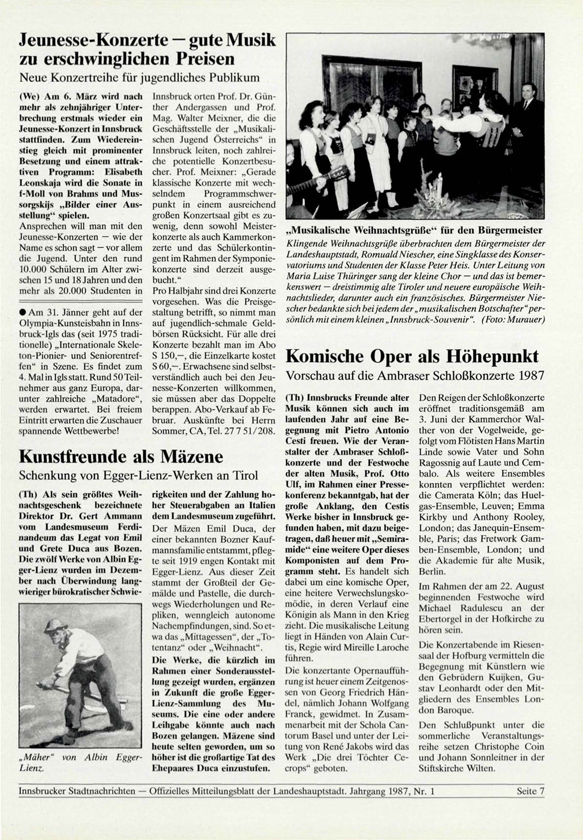 Innsbrucker Stadtnachrichten — Offizielles Mitteilungsblatt der Landeshauptstadt. Jahrgang 1987, Nr.
