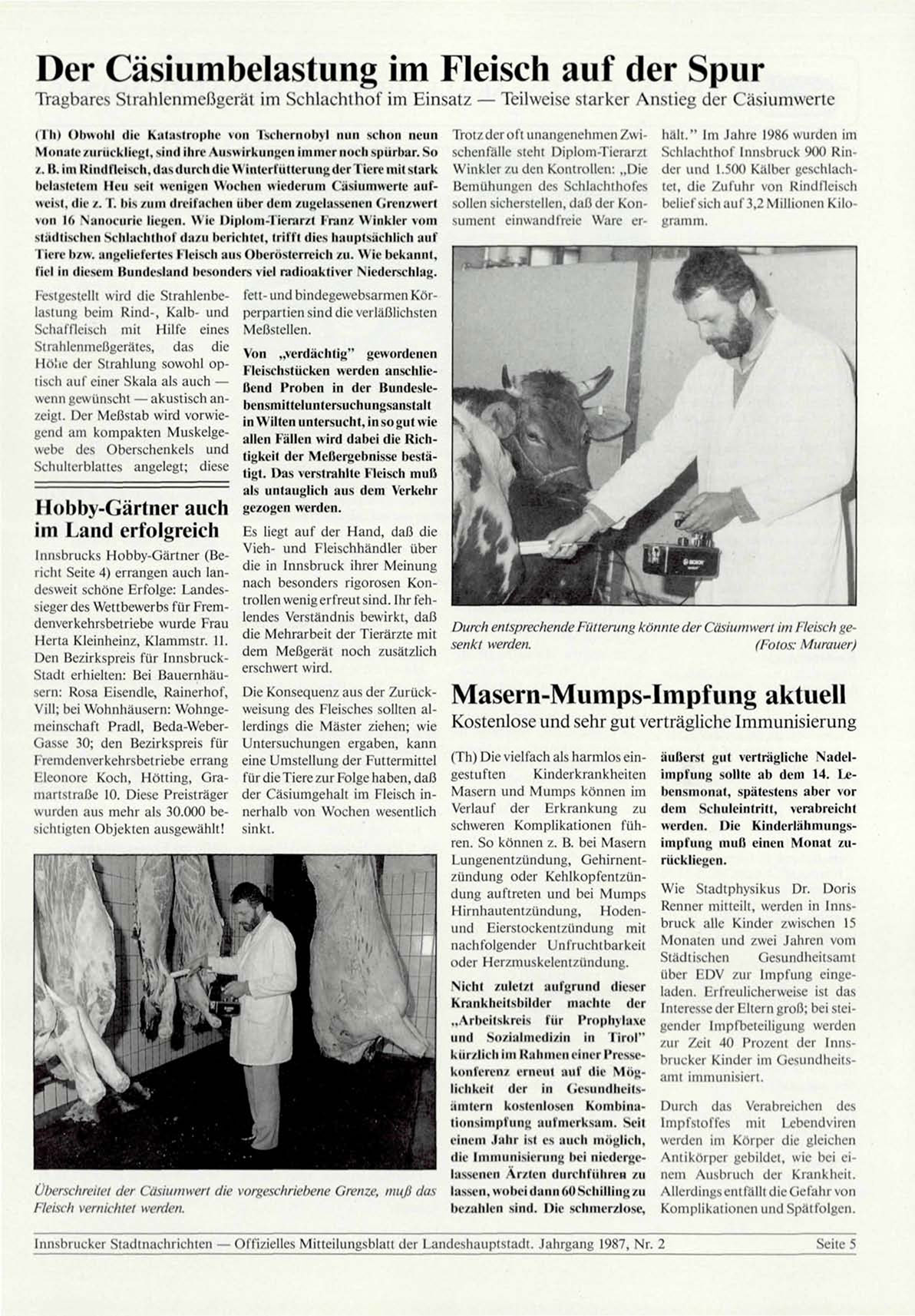 Innsbrucker Stadtnachrichten — Offizielles Mitteilungsblatt der Landeshauptstadt. Jahrgang 1987, Nr. 2